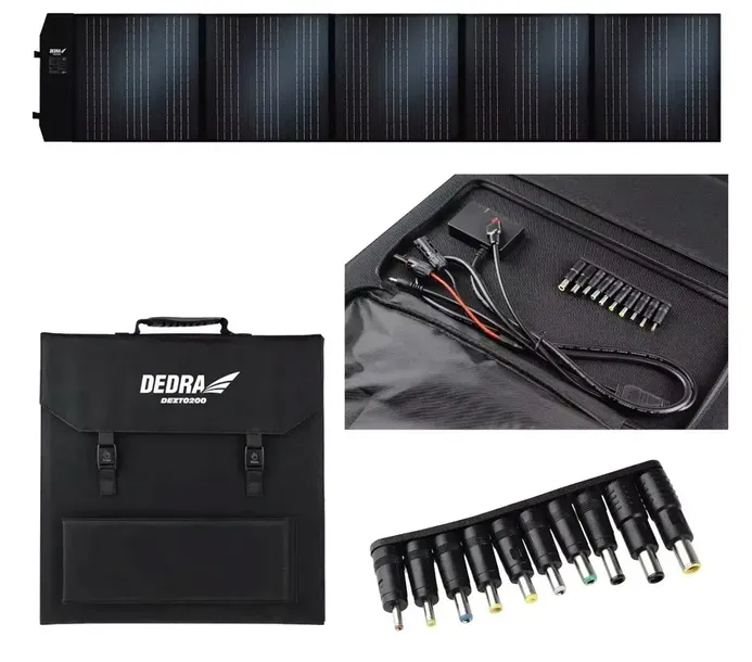 Przenośny panel solarny DEZT0040 to produkt służący do ładowania stacji zasilania o mocy do 500W, a także innych urządzeń jak tablet czy smartphone.